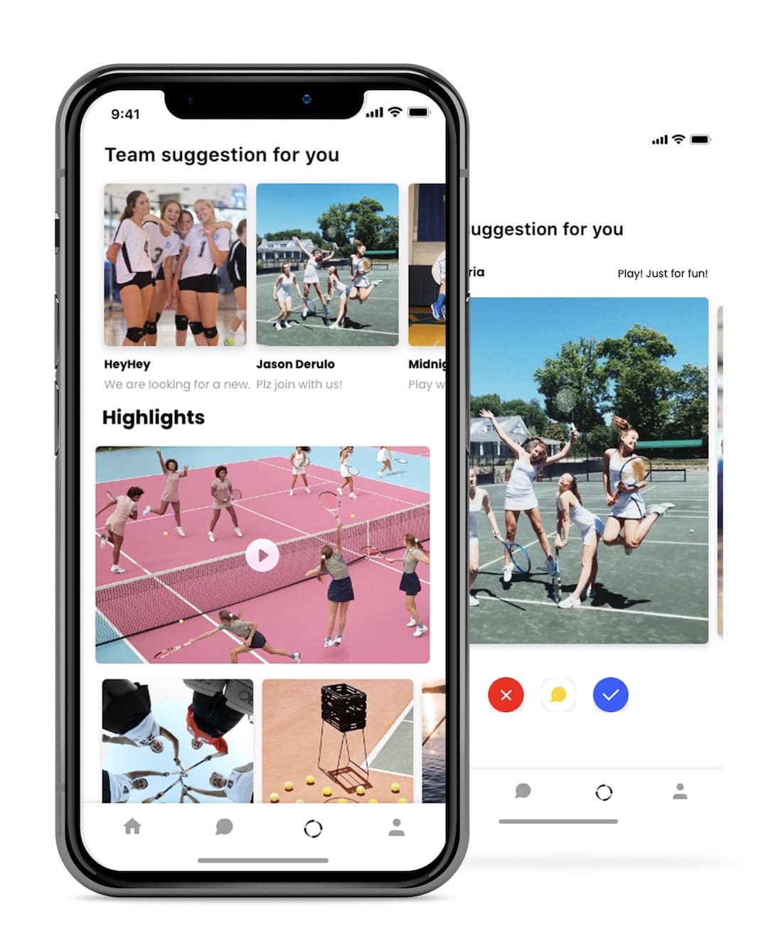 Users may get suggested to join new teams easily through the username interface. Additionally, users can see the highlight reel on the same screen.
