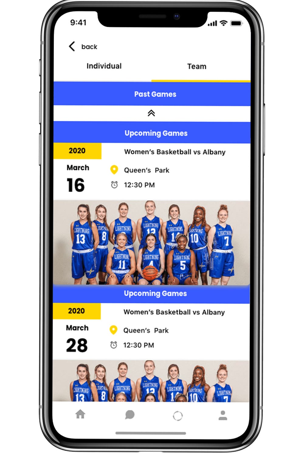 - By far the most important feature is upcoming games (location,