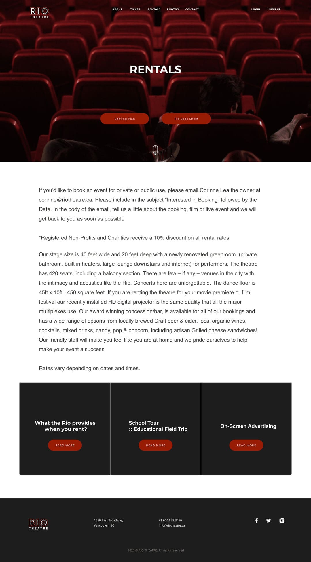 After going through different theatre websites, I saw major UX problems in many of them. I chose to focus on the experience in one of the oldest theatre companies in Vancouver, Rio Theatre, as a basis for the problem I wanted to fix.