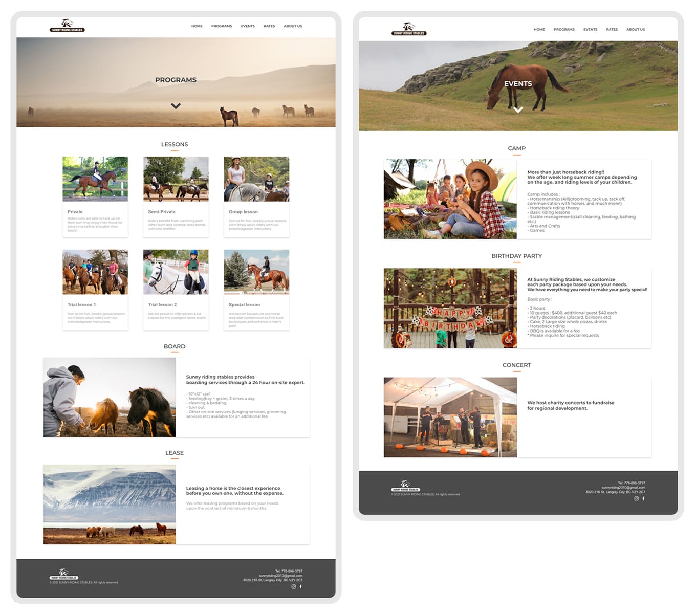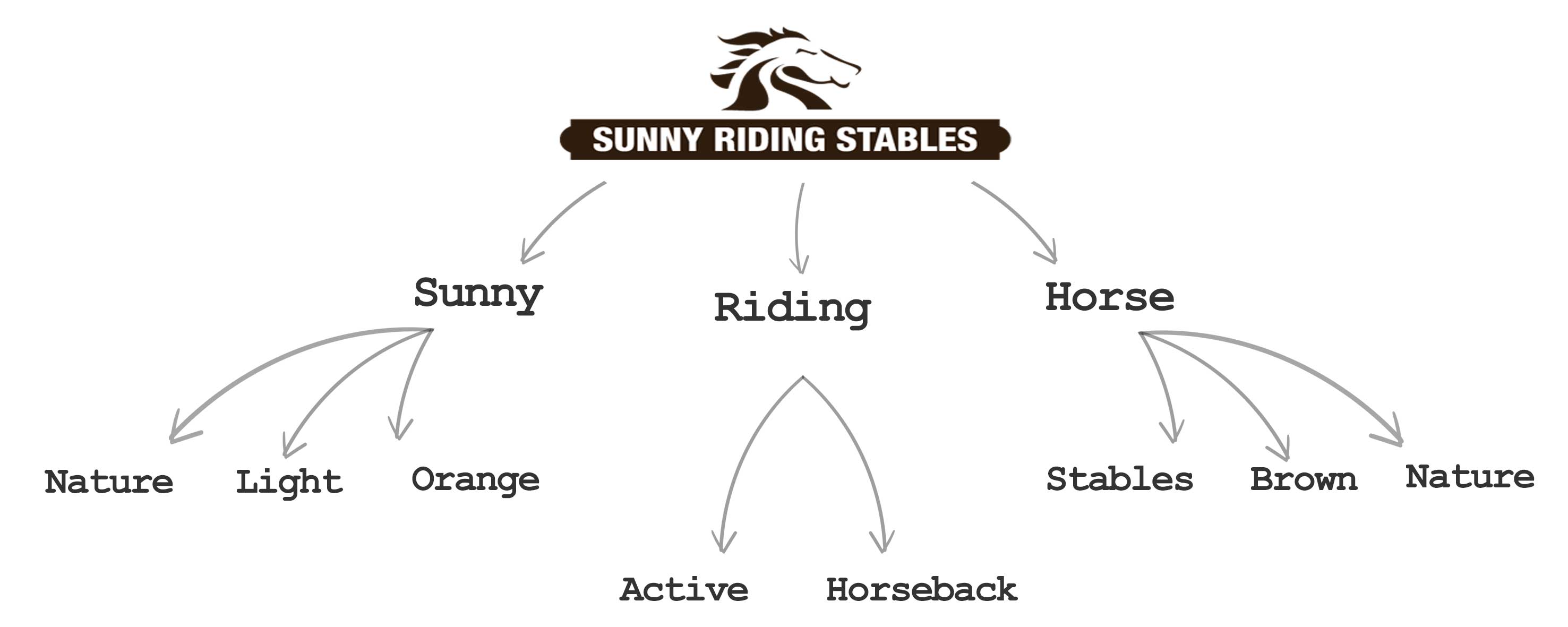 I paid attention to creating visual concepts, adhering to associative and logical structure. As you can see in the chart. I built a structure of associations to the “Sunny Riding Stables“ name.