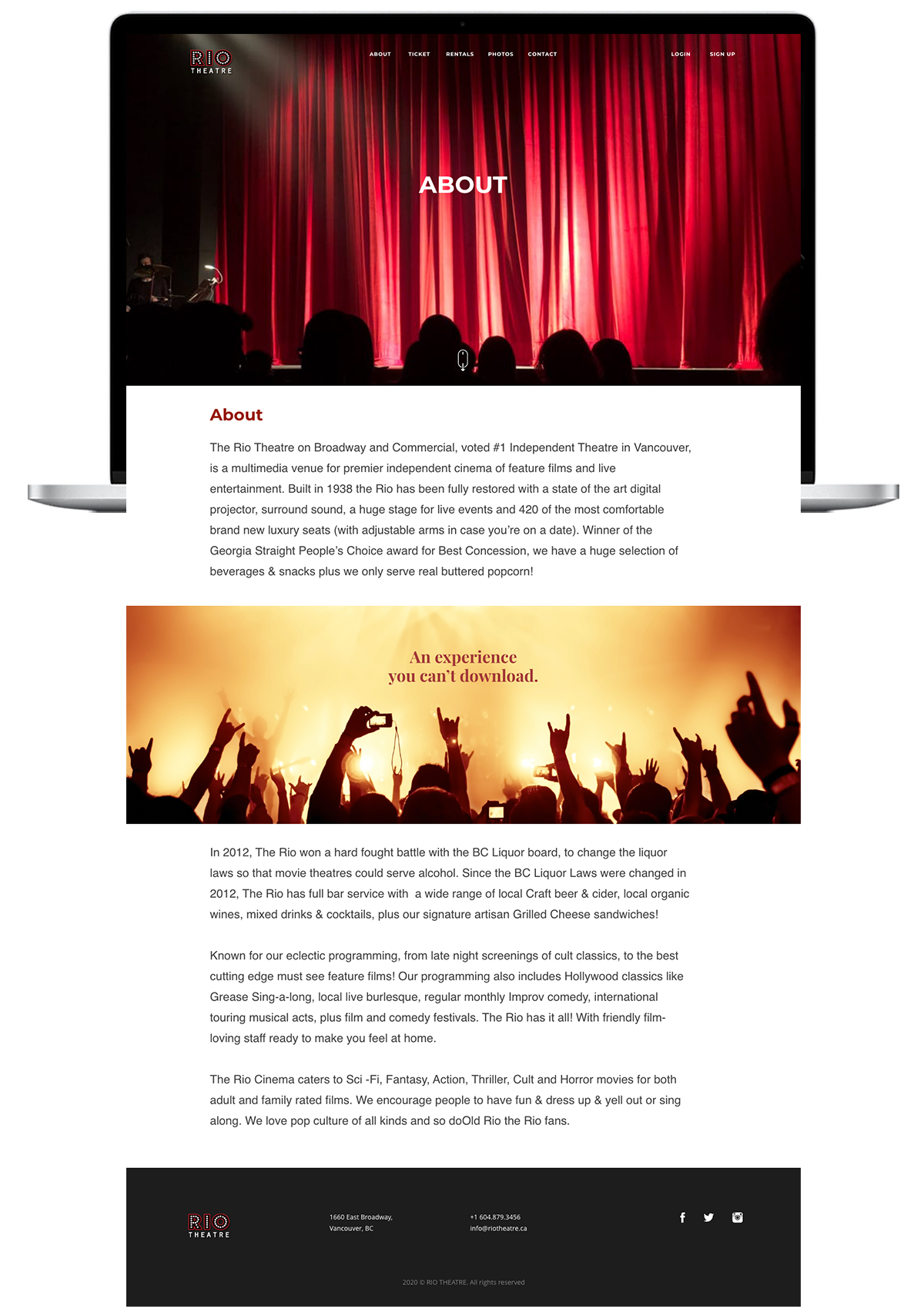 After going through different theatre websites, I saw major UX problems in many of them. I chose to focus on the experience in one of the oldest theatre companies in Vancouver, Rio Theatre, as a basis for the problem I wanted to fix.