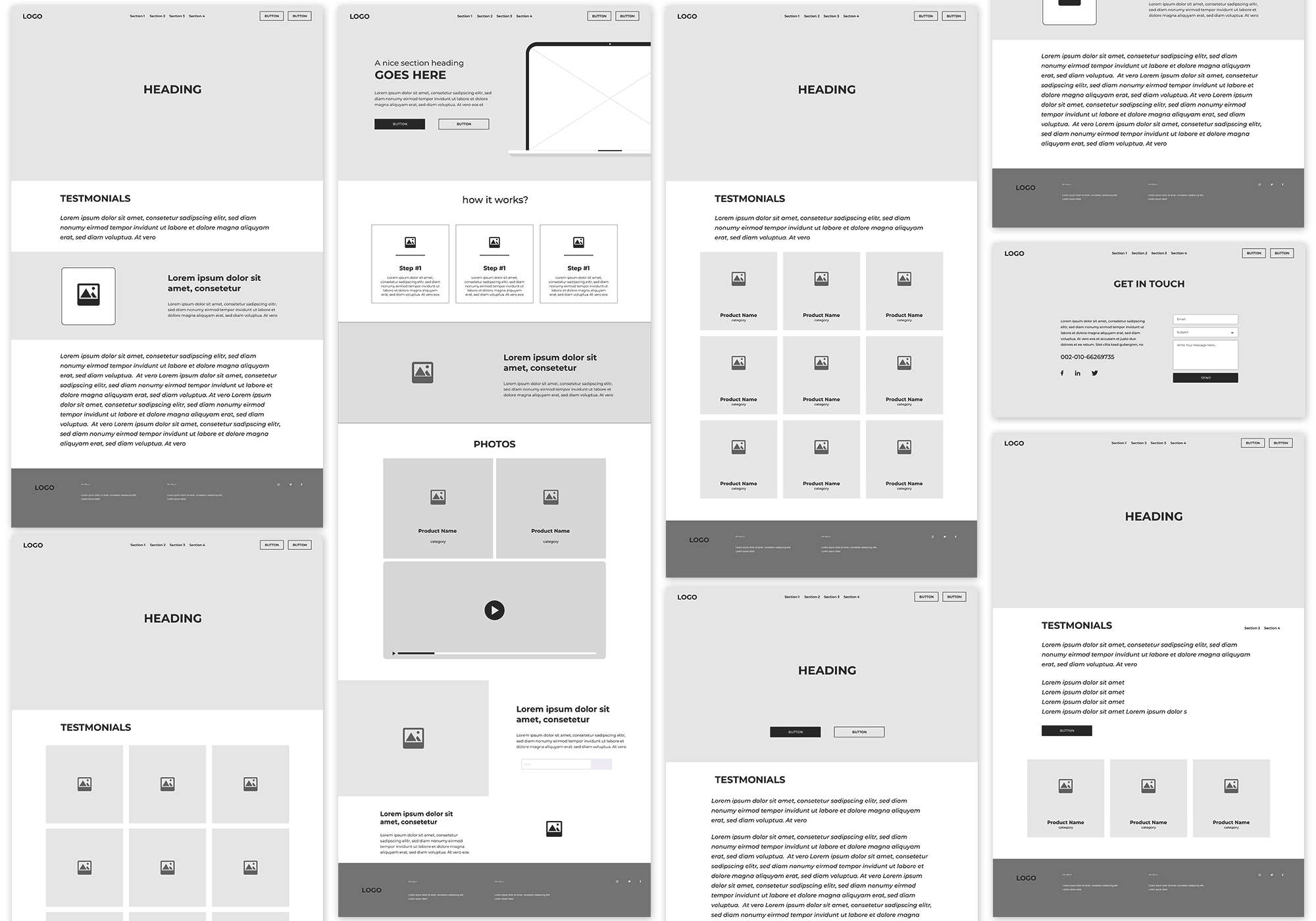 After brainstorming, I started with a study of competitors websites, analysis online stores and especially the production and development wireframes of all pages.